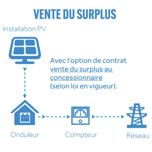 Avec ou sans revente du surplus au concessionnaire (selon loi en vigueur)